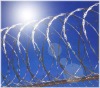 Material: hot galvanized steel sheet and wire, stainless steel sheet and wire: AISI430 and AISI304. Razor barbed tape is a kind of modern security fencing materials fabricated with razor-sharp steel blade and high-tensile wire. Barbed Tape can be installed to achieve the result of frightening and stopping to the aggressive perimeter intruders, with piecing and cutting razor blades mounted at the top of the wall, also the special designs making climbing and touching extremely difficult. The wire and strip are galvanized to prevent corrosion The specification of our Razor barbed wire: Standard materials are either galvanized or stainless steel. Detailed description Razor Blade Specification: Reference Number Blade Style Thickness Wire Dia Barb Length Barb Width Barb spacing BTO-10 0.5±0.05 2.5±0.1 10±1 13±1 26±1 BTO-15 0.5±0.05 2.5±0.1 15±1 15±1 33±1 BTO-22 0.5±0.05 2.5±0.1 22±1 15±1 34±1 CBT-65 0.6±0.05 2.5±0.1 65±2 21±1 100±2 Barbed Tape Wire Specification: Outside Diameter No. of Loops Standard Length per Coil Type Notes 450mm 33 8M CBT-65 Single coil 500mm 41 10M CBT-65 Single coil 700mm 41 10M CBT-65 Single coil 960mm 53 13M CBT-65 Single coil 500mm 102 16M BTO-10.15.22 Cross type 600mm 86 14M BTO-10.15.22 Cross type 700mm 72 12M BTO-10.15.22 Cross type 800mm 64 10M BTO-10.15.22 Cross type 960mm 52 9M BTO-10.15.22 Cross type